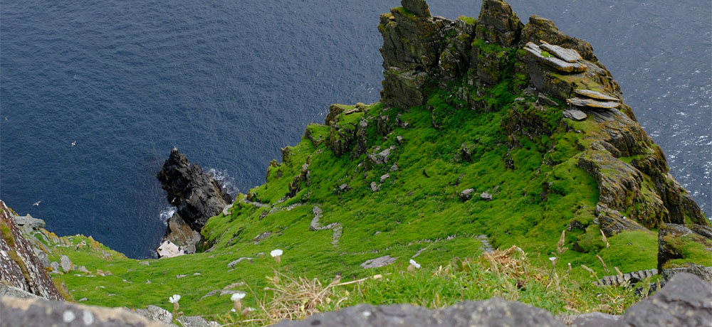 In THE LAST JEDI, het tweede deel uit de derde Star Wars trilogie en episode 8 van de gehele reeks, lukt het Rey om Luke Skywalker over te halen om haar drie lessen te geven. Voor deze scènes keerde de productie voor vijf dagen terug naar Skellig Michael.